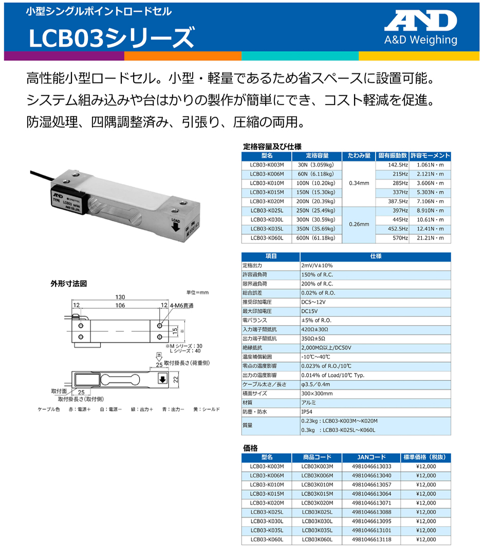 AND(A&D)稱重傳感器LCB03-K035L