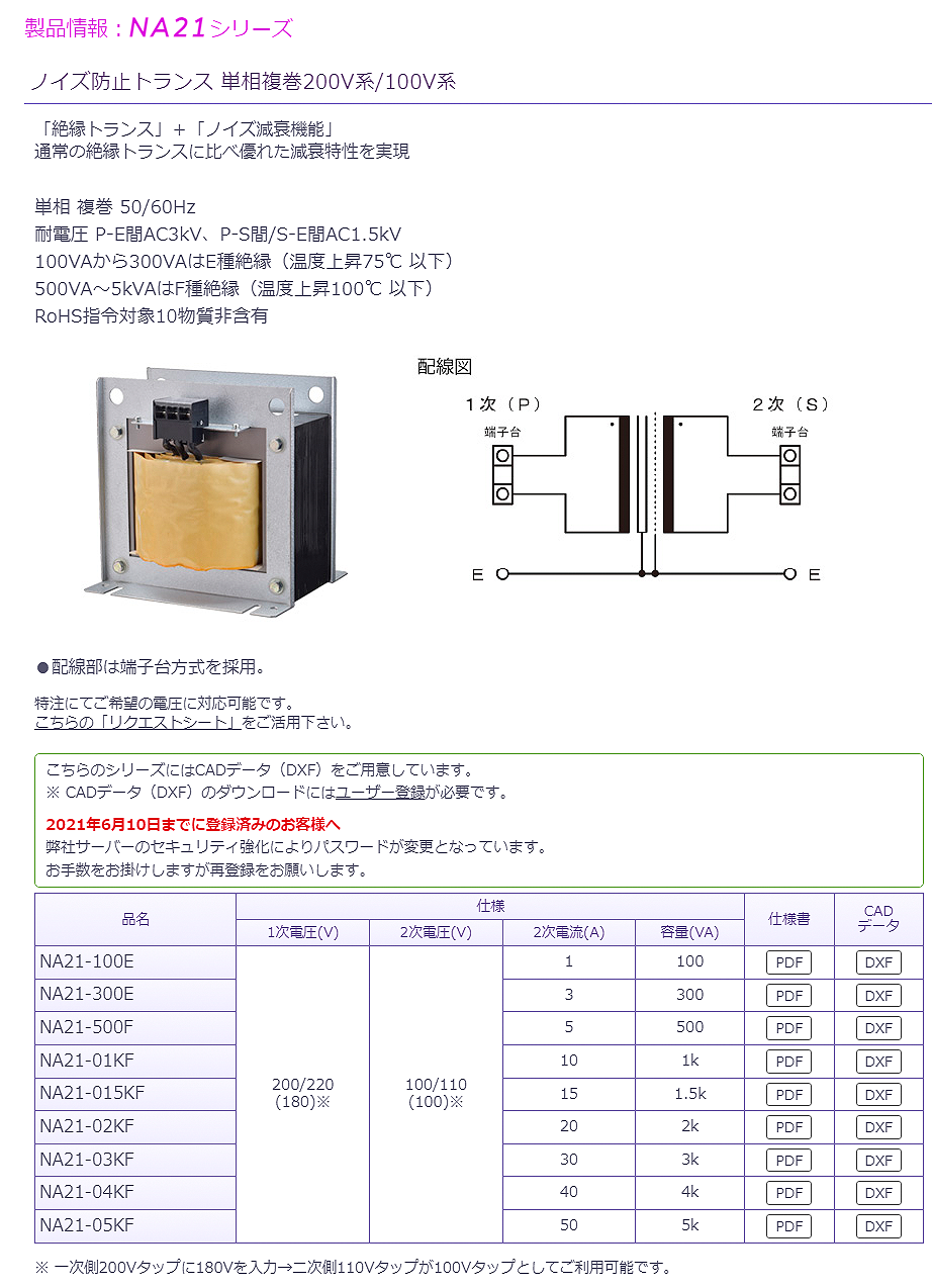 豐澄單相200V/100V變壓器NA21-05KF